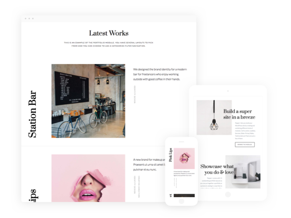 Present your work with the Portfolio module, explain the benefits of what you do with the Services module and show tailored pricing plans with the Pricing Tables module.
