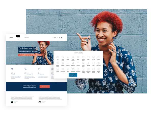 Meet the modules: pre-designed sections that you stack together and customize to turn your idea into pages.